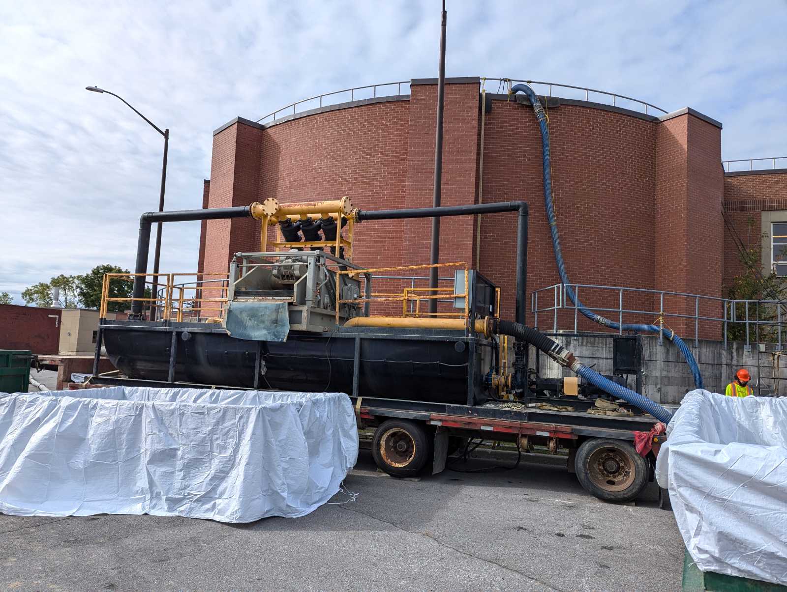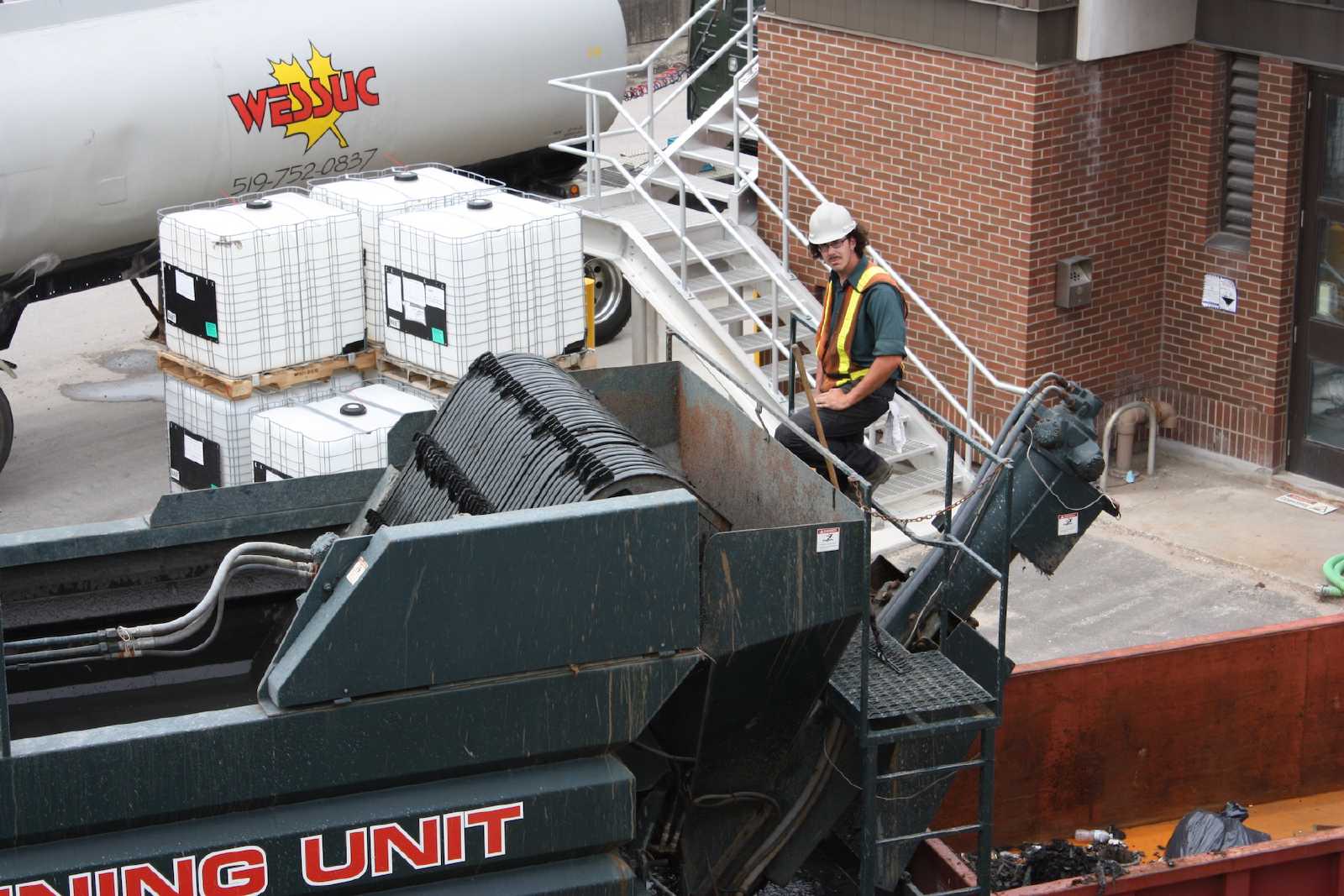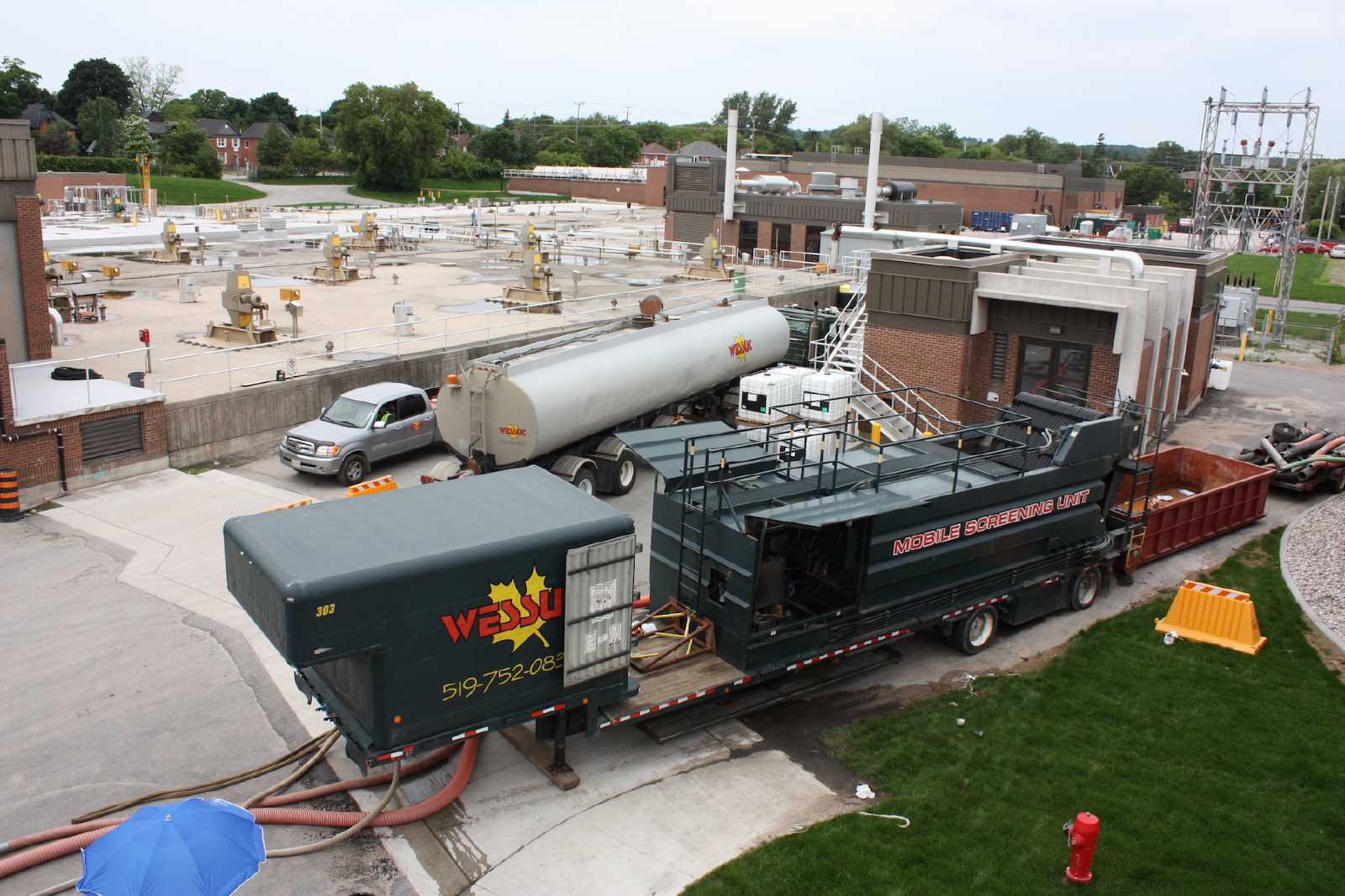 Screening and haulage (or return to plant) is typically the fastest way to return your tank to the design capacity/capability by removing the heavy grit, hair, and plastics from it. This process generally operates at four times the processing speed of conventional dewatering. It also avoids equipment and supply constraints while working within the confines of the facility. For each project the equipment requirements are allocated based on your timeline and the anticipated tank debris. This ensures each project is done as quickly as possible.